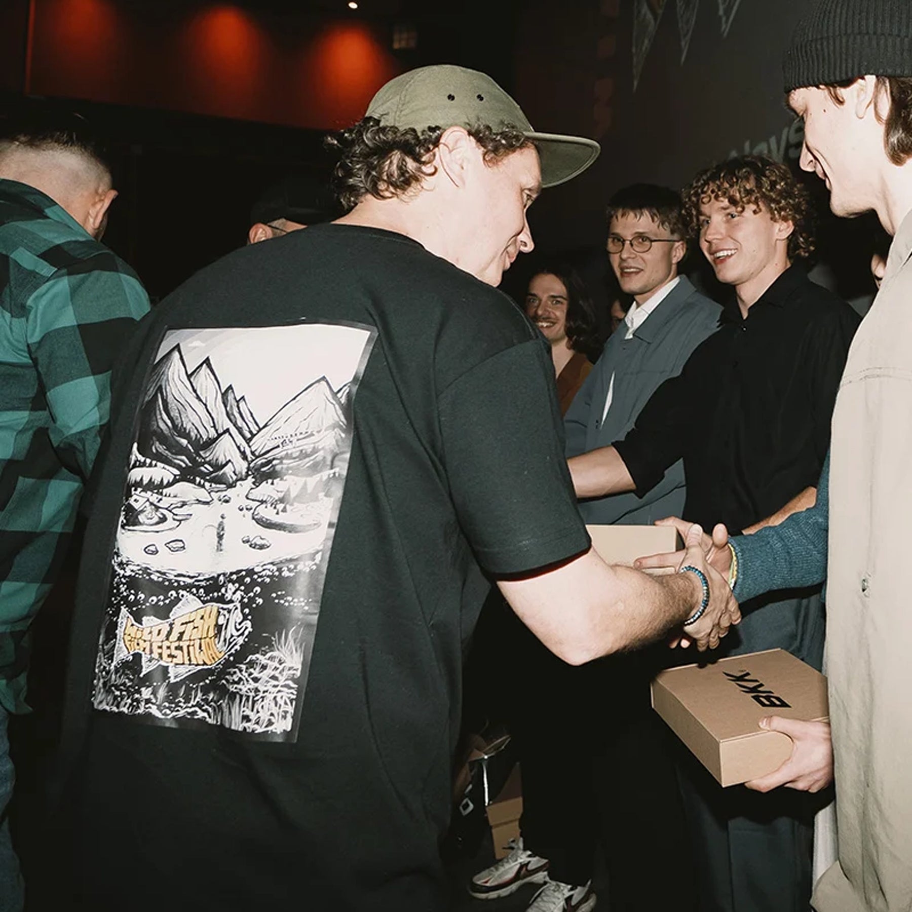 Z przodu haftowany patch Wild Fish Stories, a z tyłu grafika plakatu pierwszej edycji festiwalu.